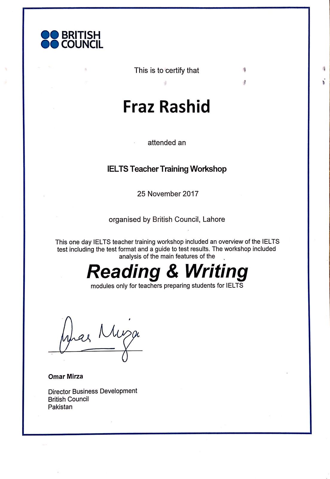 • British Council Certificate